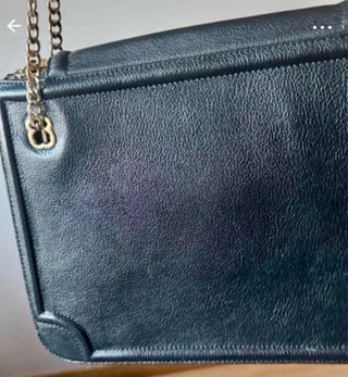 Bolso Tous de charol negro con un diseño moderno y elegante. Cuenta con un charm de oso. - Acabado brillante. - Cierre de cremallera. - Correa ajustable. Bolso TOUS City Lindsay original en color negro, con acabado tipo charol y logotipo TOUS en relieve. 🔹 Estado: usado 🔹 Marca: TOUS (original) 🔹 Modelo: City Lindsay 🔹 Color: negro 🔹 Interior: forro rosa característico TOUS 🔹 Cierre: cremallera 🔹 Asa regulable El bolso presenta signos visibles de uso, especialmente: • desgaste en esquinas y bordes • pequeñas marcas en el exterior • manchas de uso en el forro interior Es un bolso totalmente funcional.