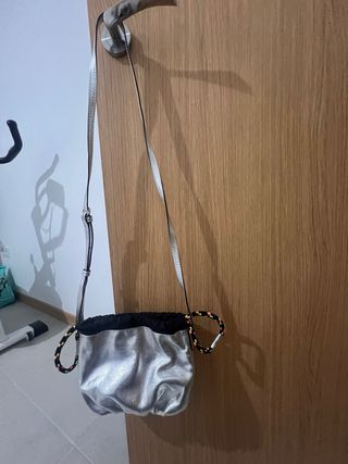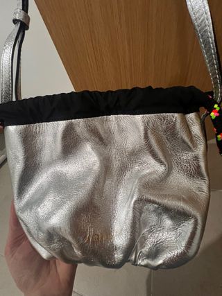 Bolso de la marca Tous en color plata. - Diseño moderno y llamativo. - Cierre de cordón. - Asa ajustable. Sin apenas uso. Original.