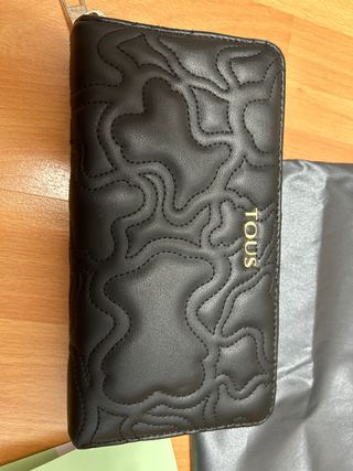 Elegante cartera Tous en color negro. Presenta un diseño acolchado con el distintivo patrón de la marca. - Cierre de cremallera. - Incluye bolsa guardapolvo. - Tarjeta de autenticidad.