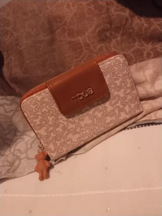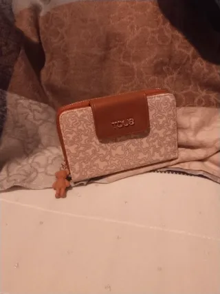 Elegante cartera Tous de color marrón, con el logo de la marca en relieve y un adorable charm de oso. - Diseño con cremallera completa. - Acabado en piel sintética. - Incluye un charm de oso. - Logo Tous en relieve.