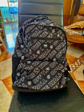 Mochila Vans con estampado Off The Wall. Con muchos bolsillos exteriores e interiores. Usada pero muy cuidada, todas las cremalleras funcionan a la perfección. Fue comprada por 55€.