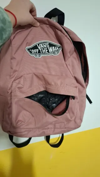 Mochila de la marca Vans en color rosa, completamente nueva y con sus etiquetas. - Diseño moderno y funcional. - Compartimento principal espacioso. - Bolsillos laterales de malla. - Cierre de cremallera.