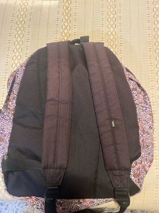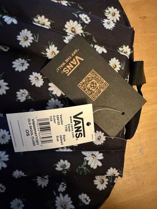 Mochila de la marca Vans con un diseño único. Se está abriendo un poco la costura en la parte de atrás, si lo coses, eso no se ve - Estampado floral en tonos claros sobre fondo oscuro. - Logo de Vans en la parte frontal.