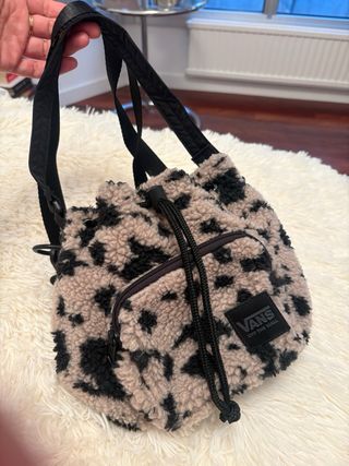 Bolso bandolera Vans All Around con un diseño moderno. - Material suave y cálido. - Estampado de manchas en beige y negro. - Cierre de cordón ajustable. - Correa de hombro negra.