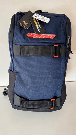 Mochila Vans Obstacle Skatepack Capacidad : 23 litros Medidas: 46 cm (largo)x28cm (ancho)x15cm(fondo) Confeccionada en nailon 100% de fibras CORDURA, famosas por su durabilidad y resistencia a la abrasión, el desgaste, los desgarros y los arañazos. Multiples bolsillos, compartimento para portátil o tablet, para monederos, llaves, etc Nueva a estrenar