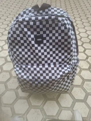 Mochila con estampado checkerboard y logo de Vans. - Diseño a cuadros en blanco y negro. - Logo de Vans bordado en la parte frontal. como nueva utilizada muy pocas veces