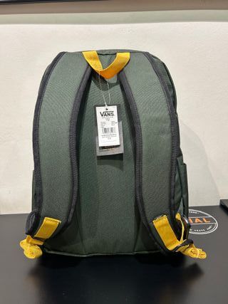 Mochila de la marca Vans con un diseño moderno y funcional. - Color principal verde bosque. - Detalles en color amarillo vibrante. - Tirantes acolchados para mayor comodidad.