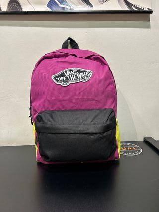 Mochila de la marca Vans con un diseño clásico y funcional. Perfecta para el día a día. - Parche Off The Wall en la parte frontal. - Bolsillo exterior con cremallera. - Correas ajustables para mayor comodidad. -Medidas 42.5x32.4x12.1 cm. -Capacidad 22 litros. -Bolsillo interior para portátil y exterior para botella.