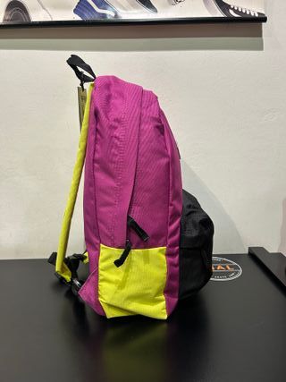 Mochila Vans en color rosa, completamente nueva y sin estrenar. - Compartimento principal espacioso. - Bolsillo frontal con cremallera. - Asas ajustables y acolchadas. - Asa superior para colgar. - Logo de Vans en la parte frontal.