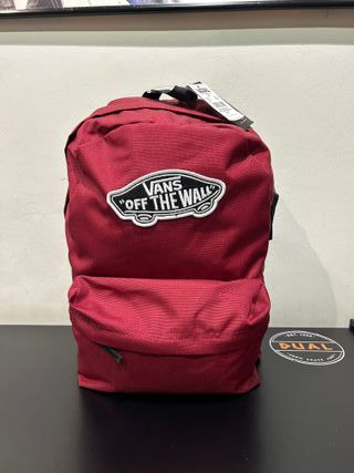 Mochila de la marca Vans en color rojo. Cuenta con el icónico logo Off The Wall en la parte frontal. - Compartimento principal espacioso. - Bolsillo frontal con cremallera. - Tirantes ajustables.