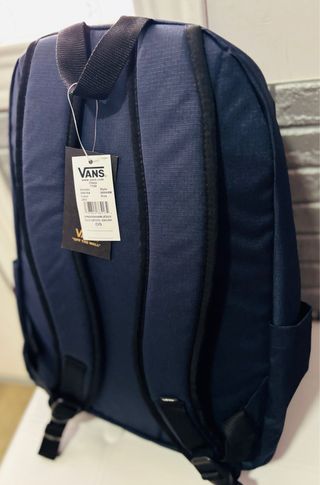 Mochila clásica de la marca Vans en color azul marino. Un diseño icónico y versátil. Nueva a Estrenar - Compartimento principal espacioso. - Bolsillo frontal con organizador. - Correas acolchadas ajustables.