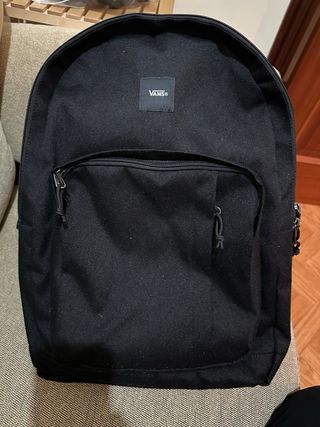 Mochila negra con el logo de Vans. - Compartimento principal. - Bolsillo frontal con cremallera.