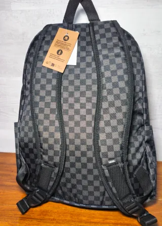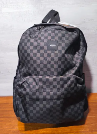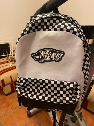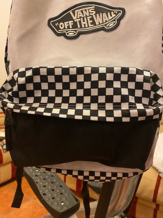 Mochila con el icónico estampado de cuadros de Vans. - Diseño de cuadros en blanco y negro. - Etiqueta de la marca Vans. - Algun rasguño en la parte inferior de la mochila - Compartimento extra en el interior de la mochila y en el bolsillo