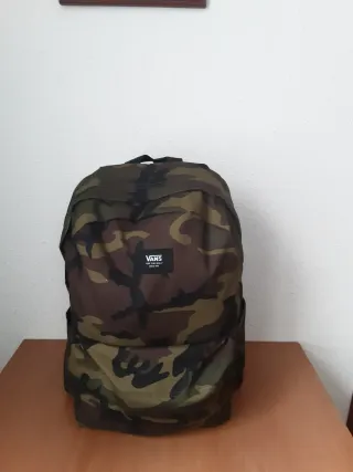 Puedo entregar en mano en Aviles y Laredo. Mochila con estampado de camuflaje. - Diseño en tonos marrones y verdes. - Etiqueta de la marca Vans en la parte frontal. - Capacidad 22 litros. - Dos bolsillos laterales para agua.