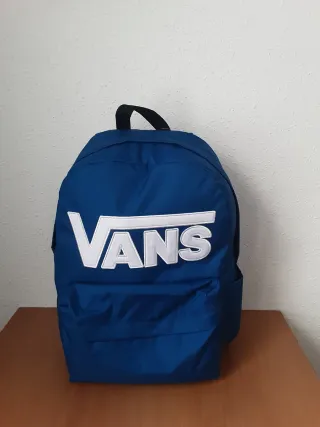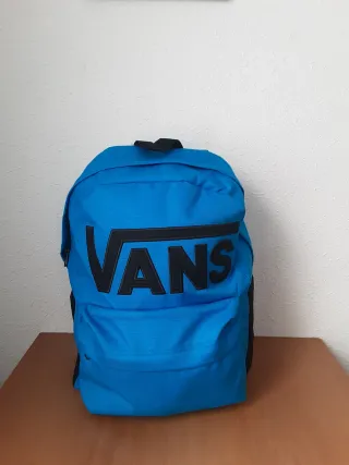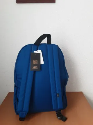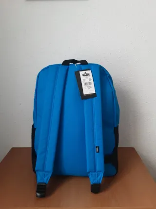 Puedo entregar en Avilés y Laredo. Mochila de la marca Vans con un diseño moderno y práctico. - Color azul vibrante con detalles en negro. - Logo de Vans prominentemente visible. - Capacidad 22 litros. - Bolsillo lateral para botella de agua.