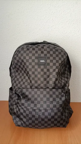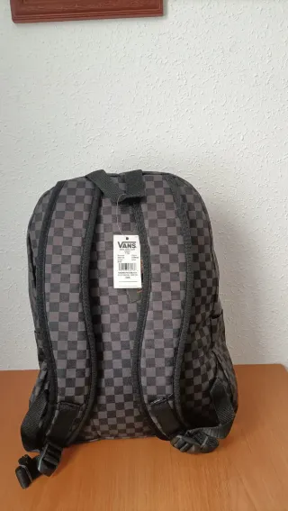 No negocio precio ni hago envios puedo entregar en mano en Laredo y Avilés. Mochila de la marca Vans con un diseño moderno y funcional. - Compartimento principal espacioso y apertura superior para facilitar la carga. - Bolsillo frontal con cremallera. - Correas ajustables para mayor comodidad. - Confección en tejido cordura que ofrece una mayor durabilidad y resistencia. = Bolsillos laterales para botella de agua. =Capacidad 28 litros. =Dimensiones alto 50 cm ancho 30 cm y fondo 11 cm.