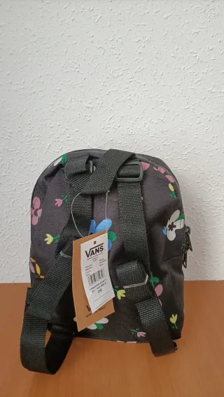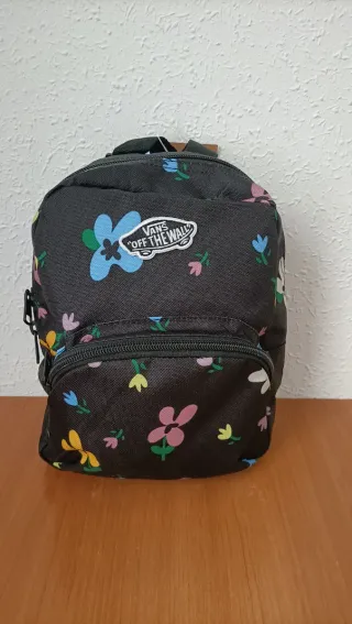 Puexo entregar en mano en Avilés y Laredo. Esta minimochila Vans presenta un divertido estampado floral sobre fondo negro. - Diseño compacto y práctico. - Cierre de cremallera. - Logo de Vans en la parte frontal. - Capacidad 6 litros.
