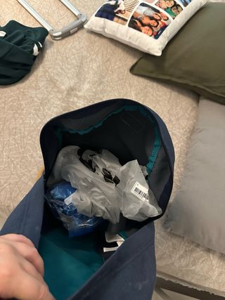 Bolsa de viaje estilo saco / petate de Vans en tela de canvas resistente azul y rojo. Cierre de cordón, bolsillo interior, asa y cintas para llevar como mochila. Gran capacidad, muy versátil, ideal para viajar, para el gimnasio, el colegio... Completamente nueva, fue un regalo para mí hija que nunca usó.