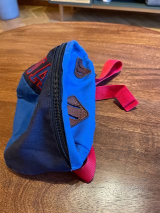 Riñonera Vans vintage en azul y rojo. Está en buenas condiciones, con un diseño clásico. - Bolsillo principal con cierre. - Dos correas ajustables. - Detalles en cuero sintético.