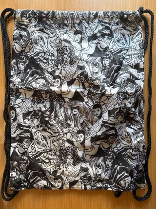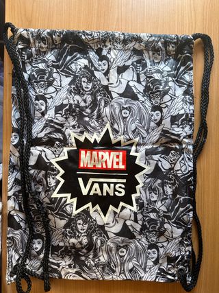 Mochila deportiva Vans con estampado Marvel de mujeres. Apenas ha tenido uso. - Mochila tipo drawstring. - Diseño con personajes Marvel. - Ideal para gimnasio o actividades diarias.