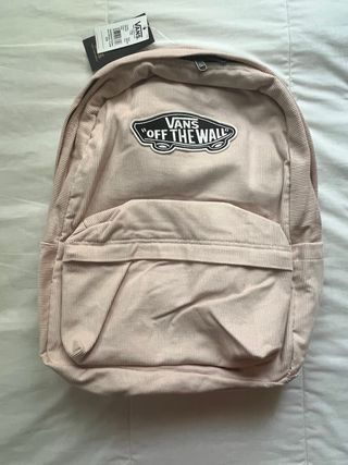 🛍Mochila vans off the realm rosa pastel de pana ◾️Capacidad 22L ◾️Medidas 39,4x 29,2x 11,4 cm ◾️Con bolsillo exterior para botella de agua ✅️Completamente nueva ✈️Envío en 24/48h