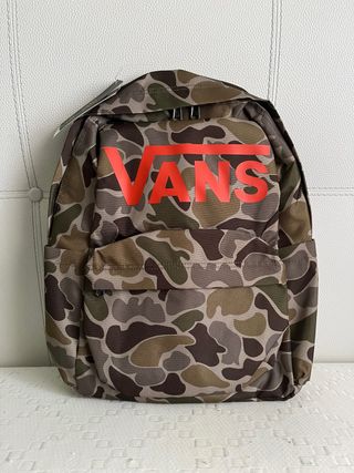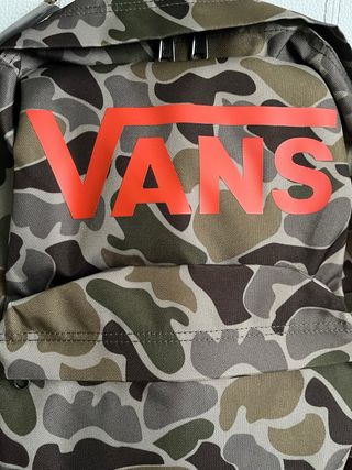 Mochila Vans en perfecto estado. Es una mochila ideal para el día a día. - Diseño camuflaje en tonos marrones y naranjas. - Logo Vans en color naranja. - Compartimento principal con cierre. -Capacidad 18 litros. -Medidas 39.4x29.2x11.4 cm. -Con bolsillo interior para portatil y exteriores para botellas.