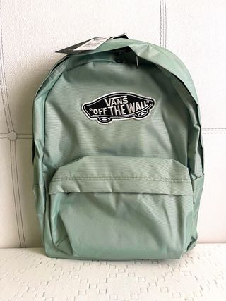 🛍Mochila vans off the realm verde pastel ◾️Capacidad 22L ◾️Medidas 39,4x 29,2x 11,4 cm ◾️Con bolsillo exterior para botella de agua ✅️Completamente nueva ✈️Envío en 24/48h.