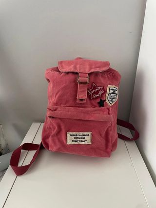 bolso mochila color rojo ladrillo, espacioso, con bolsillo interior y exterior, poco usado y en buenas condiciones.