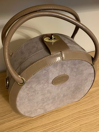 Se puede llevar cruzado con el asa larga tipo bandolera o de mano. Tiene alguna zona un poco descolorida (el asa) por el uso y alguna manchita. Se ve todo en las fotos pero puesto o a simple vista, no se nota nada.