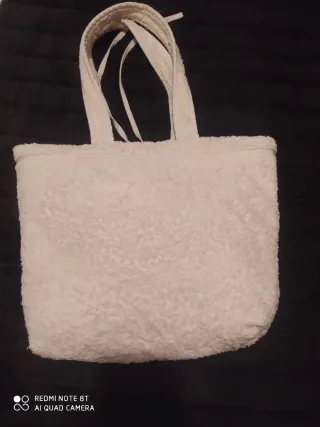 Bolso de tela tipo tote de Zara. Ancho 46 cm Largo 40 cm Fondo 10 cm - Material suave y texturizado. - Cierre de cordón. - Asas cómodas para llevar al hombro.