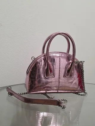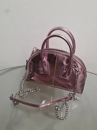 Bolso Mini Zara Rosa Metalizado - Efecto Cocodrilo
