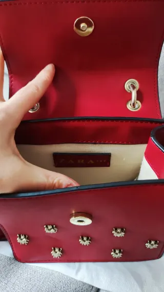Bolso Zara Rojo con Detalles Dorados