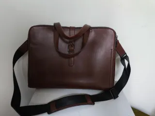 Bolso de mano y bandolera de piel sintética en color marrón. - Asa corta para llevar en la mano. - Correa larga ajustable para llevar cruzado o al hombro. - Cierre principal con cremallera. - Detalle de hebilla en la parte frontal. - vale para llevar ordenador y documentos Dimensiones 41 por 31,5, por 5a 6 cm de ancho