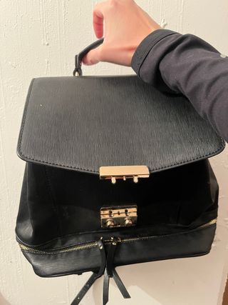 Mochila Zara Negra con detalles dorados