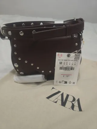 Bolso bandolera de Zara con un diseño moderno y detalles de tachuelas. - Color marrón. - Cierre de solapa. - Correa ajustable. Nuevo con su etiqueta