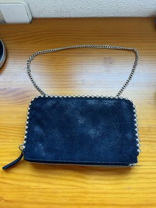Elegante bolso de mano o bandolera de Zara. - Acabado en ante. - Decorado con tachuelas metálicas. - Incluye cadena metálica para llevar al hombro o cruzado.
