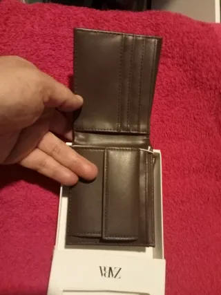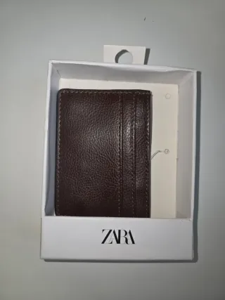 Cartera original de ZARA fabricada en piel de vacuno auténtica. Color negro, diseño clásico y elegante. Cuenta con varios compartimentos para tarjetas y billetes. Sin usar, en excelente estado, sin desgastes ni roturas. Ideal para uso diario o como regalo.