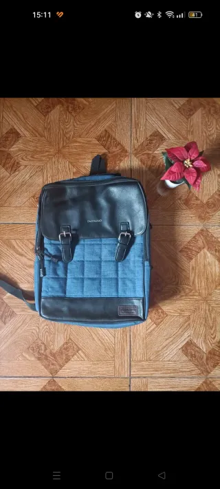 Mochila con un diseño moderno y práctico, combinando tela tipo vaquera con detalles en piel sintética. - Compartimento principal espacioso. - Cierre con solapa y hebillas. - Bolsillo frontal con cremallera. - Correas ajustables para mayor comodidad. Marca: comprada en tienda local. No tiene marca. Mochila azul tipo vaquera con apartado para portátil en buen estado Mochila en buen estado con los compartimentos que se ven en las imágenes tiene una parte para el portátil es muy cómoda y está en buen estado es azul tipo vaquera y negra si necesitas más fotos o medidas me mochila en buen estado con los compartimentos que se ven en la