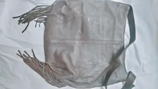 Mochila de piel con un diseño muy original y detalles de flecos. - Poco uso. - Cierre de cremallera.