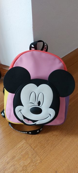 Mochila de colores de textura suave.Las cremalleras y el belcro esta todo perfecto,no tiene ningún descocido