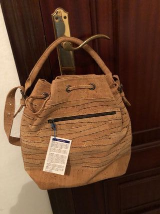 Mochila alemana marron, a estrenar, hecho de material natural, con el ticket puesto, nueva sin marcas.