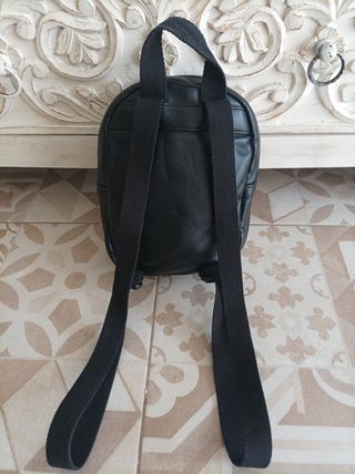 Mochila de polipiel de tamaño pequeño con.Muy buen estado.Mide 24 cm de largo por 20 de ancho.