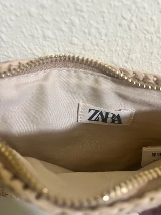 Cartera de la marca Zara, con un diseño moderno y práctico. - Dos compartimentos principales con cremallera. - Bolsillo exterior con cremallera. - Detalle de tiradores en las cremalleras.