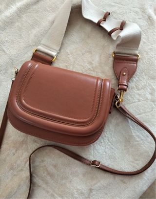 Bolso de mano de Zara en color beis, con un diseño moderno y elegante. Perfecto para complementar cualquier atuendo. - Cierre de solapa. - Correa ajustable.