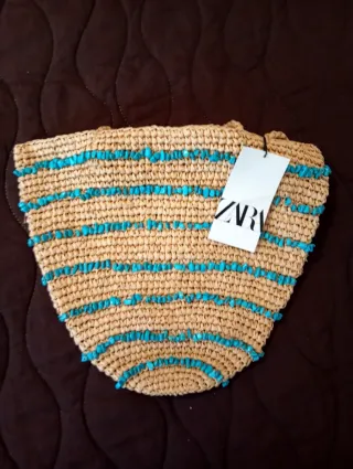 Precioso bolso de verano de Zara, ideal para tus días soleados. Es bastante ligero y espacioso, perfecto para llevar todo lo necesario. - Asa de mano y asa para llevar al hombro. - Diseño original y elegante. - Material de piel combinada en tonos beige y marrón. Del uso solo tiene en una zona de las asas un poco de desgaste.