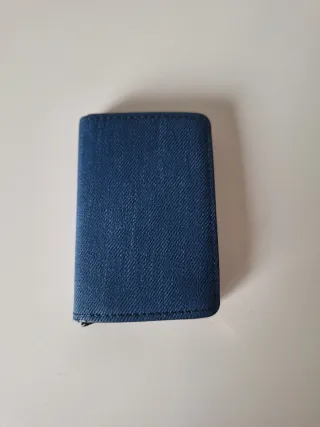 Cartera - billetera de estilo compacto, antirrobo con un diseño moderno. Medidas: 10x7cm. - Fabricada en tela azul vaquera. - Capacidad para billetes y tarjetas.