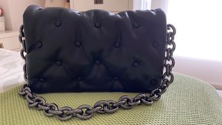 Precioso bolso de Zara. Es de color negro y tiene un diseño acolchado muy elegante. - Asa de cadena dorada. - Cierre de solapa.