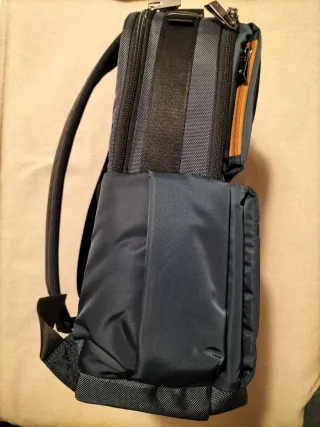 Mochila de la marca Doughnut en color azul. Y tiene una cremallera lateral para acceder a su interior sin abrirla por arriba. El color real más aproximado se puede ver en la foto 4, por ejemplo.
