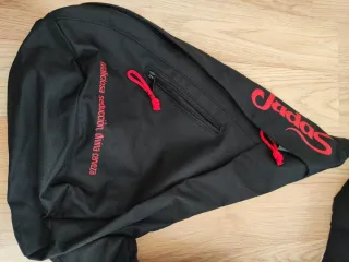 Mochila de un solo hombro con diseño llamativo. - Logo Cerveza Judas en rojo. - Cremallera frontal con tirador rojo. - Bolsillo exterior con cremallera. - A estrenar
