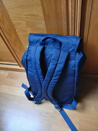 Mochila de estilo moderno y versátil. Cierre principal con cordón. Bolsillo frontal con cremallera. Usada una vez.